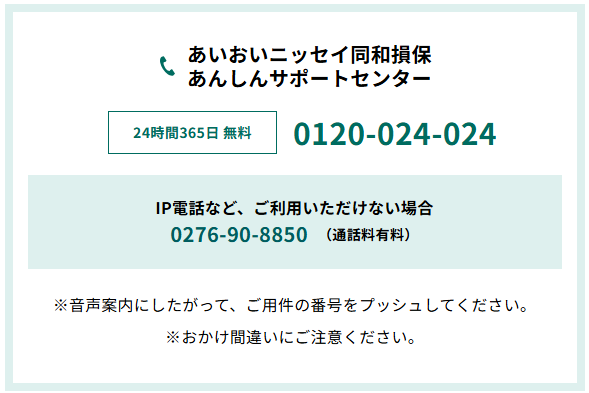 ★上記連絡先は、あいおいニッセイ同和損害保険㈱保険取り扱い保険商品に関する窓口となります。